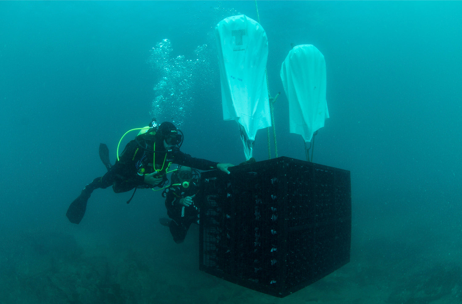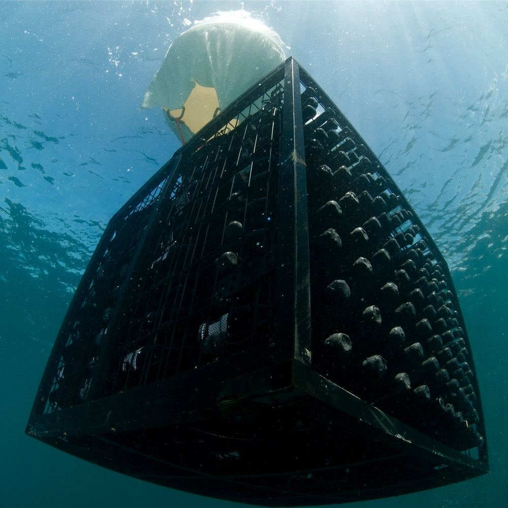 Crusoe Treasureは、海底に沈めた人工リーフ型セラーでワインを熟成させています。